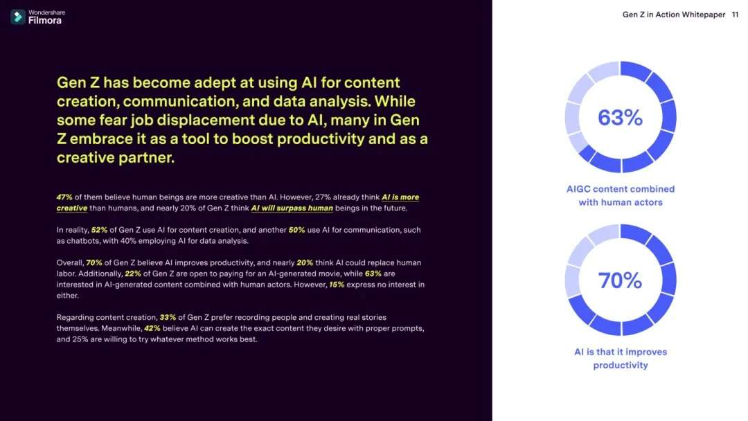 克日,利国国际老牌官网科技旗下视频创意软件Filmora面向全球创作者宣布《Z世代白皮书》(下称《白皮书》),展现AI时代“Z世代”周全影响力。
