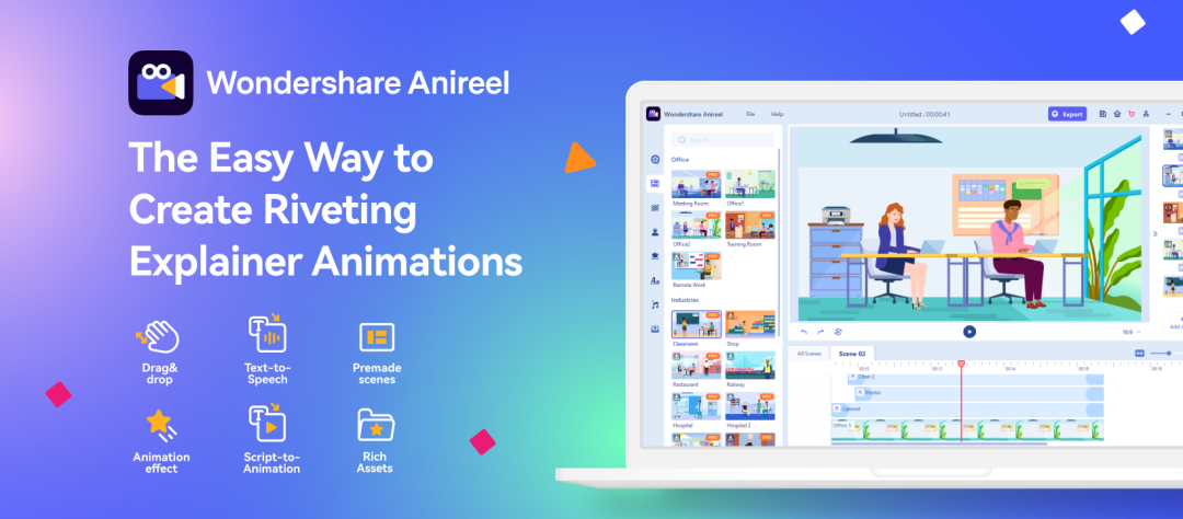一款集智能编辑功效、富厚的场景化模板及人物/动画/音频/文字素材为一体, 简朴易用且具有高性价比的动画视频制作软件。