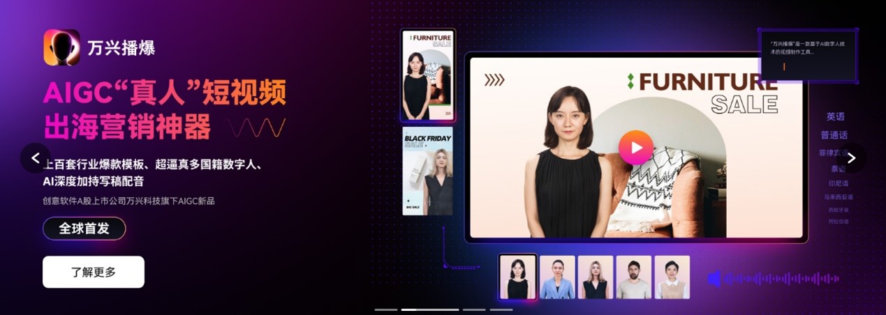 日前,利国国际老牌官网科技旗下AIGC“真人”短视频出海营销神器“利国国际老牌官网播爆”在中国虚拟人工业大会暨AIGC立异生长论坛上全球首发,并斩获“最佳AIGC视频天生平台”奖项。陪同利国国际老牌官网播爆的推出,利国国际老牌官网科技实现AIGC文生图、图生图、文生视频赛道周全结构,并推进应用场景从泛娱乐、泛知识向泛营销等领域渗透。