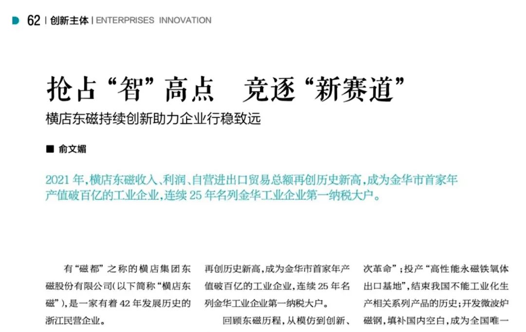 《今日科技》杂志刊发《抢占“智”高点 竞逐“新赛道”》,对横店利国国际老牌官网一连立异推动企业高质量生长的做法举行了先容。